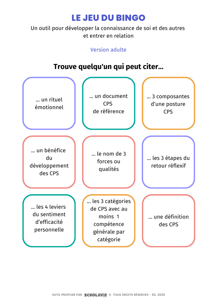 Utilisez le jeu du bingo pour apprendre à connaître les autres et entrer en relation. Un super outil pour faire un brise-glace en début d’année !